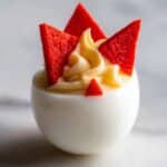 While the red pepper wings and horns steal the show, don’t hesitate to add a sprinkle of smoked paprika or a few fresh herbs like chopped chives or parsley for an added pop of color and flavor. These garnishes complement the creamy filling beautifully and enhance the overall visual appeal without masking your Halloween theme.