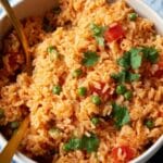 To finish, plate your Mexican rice and sprinkle extra chopped cilantro on top. The fresh herb garnish offers a burst of color and that unmistakable hint of freshness. Serve warm as a side dish or as the star of the plate for a meals that feels both comforting and festive.