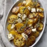 Feta is unique in this recipe for its creamy texture and tangy flavor that complements the potatoes so well. However, if you want to experiment, cheeses like halloumi or goat cheese can work, but the texture and taste will be a different experience.