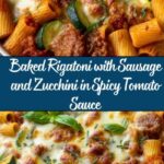 This Baked Rigatoni Fra Diavolo with Sausage and Zucchini is a spicy, comforting Italian-American casserole featuring tender rigatoni pasta baked with a flavorful spicy tomato sauce, sautéed Italian sausage, golden zucchini rounds, fresh herbs, and a luscious blend of mozzarella and Parmesan cheese. Perfect for a family dinner, this dish balances heat with fresh basil and mint, creating a rich, hearty meal bursting with Mediterranean flavors.