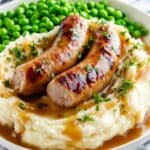 Traditionally, this dish is paired with creamy mashed potatoes, which offer a perfect canvas for soaking up that luscious gravy. To add some bright contrast and a pleasant texture, serve steamed sweet baby peas alongside. They provide a pop of green sweetness that balances the richness of the sausages and gravy beautifully.