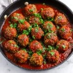 These Best-Ever Meatballs are a delicious and hearty dish made with a flavorful blend of ground beef, Parmesan cheese, fresh parsley, and garlic. Baked to perfection and simmered in a rich tomato basil sauce, they make an ideal comfort food perfect for family dinners and gatherings.
