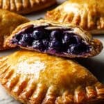 - Assemble Hand Pies: Place a spoonful of blueberry filling on one round, leaving edges clear. Fold dough over to create a half-moon shape, and gently press the edges to seal, using a fork to crimp and secure the pies.