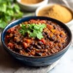 A hearty and flavorful Brazilian Black Bean Stew enhanced with toasted cassava flour for a unique texture and a zesty finish of lime and cilantro. This vegetarian stew is a comforting meal packed with spices and wholesome ingredients, perfect for a nutritious dinner.