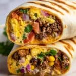 For meal prepping, wrap each burrito tightly in plastic wrap or foil and place them in an airtight container in the fridge. They’ll keep fresh for 4 to 5 days. If planning to freeze, individually wrap each burrito in plastic wrap, then foil, and slide them into a freezer-safe bag. These stored burritos ensure you always have a warm, delicious breakfast waiting for you.