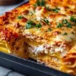 This Buffalo Chicken Lasagna is a spicy and creamy twist on traditional lasagna, combining shredded chicken tossed in buffalo sauce and ranch dressing with layers of ricotta, mozzarella, and cheddar cheeses. Baked to golden perfection, it’s a hearty and flavorful dish perfect for game day or family dinners.