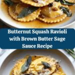 Try plating this Butternut Squash Ravioli with Brown Butter Sage Sauce Recipe on a rustic wooden board with small bowls of extra sauce and garnishes for family-style dining. Alternatively, arrange the plated ravioli neatly with a drizzle of sauce and a fresh sage leaf on top for a restaurant-quality presentation that impresses every time.