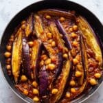 The traditional recipe uses butter for richness, but you can easily swap with vegan butter or olive oil to make it fully vegan without sacrificing flavor. The crispy chickpeas and eggplant will still shine beautifully.