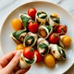 Freezing is not recommended for Caprese skewers because the fresh tomatoes, mozzarella, and basil lose their texture and vibrant flavor once thawed. These skewers are definitely best enjoyed fresh.