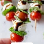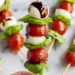 Freezing is not recommended for this Caprese Skewers Recipe because the texture of fresh tomatoes and basil will suffer significantly upon thawing. It’s best enjoyed fresh for optimal flavor and presentation.