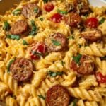 This Cheddar Ranch Pasta is a creamy, flavorful one-pan dish featuring tender rotini pasta simmered in a cheesy ranch-infused sauce, combined with savory smoked sausage, fresh baby spinach, and roasted red peppers. Ready in just 35 minutes, it’s a perfect weeknight meal that balances indulgence with fresh ingredients.