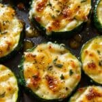 Cheesy Garlic Zucchini Steaks are a delicious and healthy low-carb side dish featuring tender baked zucchini slices topped with garlic, mozzarella, and Parmesan cheese. Perfectly seasoned with Italian herbs and finished under the broiler for a golden, bubbly cheese topping, these zucchini steaks are a flavorful vegetarian treat that can be served on their own or paired with marinara for a hearty main.