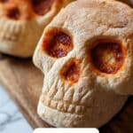 Celebrate Halloween with these fun and spooky Cheesy Halloween Pizza Skulls! Made with pre-made pizza dough and loaded with gooey mozzarella, flavorful pizza sauce, and your choice of fillings, these skull-shaped mini pizzas are perfect for a festive party treat or a kid-friendly dinner. Crisped golden in the oven and served with marinara for dipping, they’re as delicious as they are adorable.