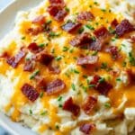 Want to impress guests? Serve your cheesy mashed potatoes in individual ramekins topped with an extra sprinkle of bacon and chives for a charming presentation. Or turn it into loaded mashed potato bowls by adding toppings like caramelized onions, crispy fried shallots, or even a soft poached egg for an elevated touch. It’s all about turning this humble classic into something a little special.