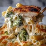 This Chicken & Broccoli Alfredo Bake is a comforting and creamy casserole featuring tender cooked chicken, penne pasta, and fresh broccoli florets all mixed in a rich Alfredo sauce. Topped with melted mozzarella and Parmesan cheese, this easy-to-make baked dish is perfect for a weeknight family dinner or a cozy meal anytime.