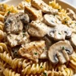 The pasta with creamy sauce doesn’t freeze well due to texture changes, but you can freeze the cooked chicken and mushrooms separately and make the sauce fresh when thawed.