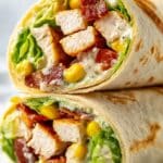 This Chicken BLT Wrap is a quick and delicious lunch or dinner option featuring grilled chicken breasts paired with crispy bacon, fresh lettuce, and juicy tomato slices, all wrapped in soft flour tortillas. A tangy mayonnaise and lemon juice dressing adds a creamy, zesty finish to each bite.