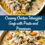 Chicken Tetrazzini Soup is a comforting and creamy Italian-inspired soup featuring tender chicken, sautéed vegetables, mushrooms, and spaghetti noodles all simmered in a flavorful chicken broth, finished with heavy cream and Parmesan cheese for a rich, satisfying meal perfect for chilly days.