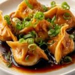 While your wontons rest after frying, mix together the soy sauce, rice vinegar, minced jalapeño, honey, and sesame oil in a small bowl. Let the sauce sit for at least 10 minutes—this allows the flavors to marry perfectly, creating that signature tangy and spicy glaze that elevates the entire dish.
