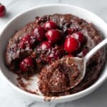 Place the dish in the oven and bake for 40 to 45 minutes, until the top is set, golden, and the edges bubble with cherry juices. The smell of warm chocolate and cherries filling your kitchen will be nothing short of heavenly.