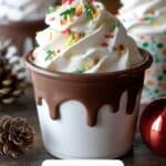 - Garnish: Top each cup generously with whipped cream and finish with holiday sprinkles or mini marshmallows to add a joyful and decorative touch.