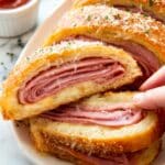 - Cool and Serve: Allow the stromboli to rest for a few minutes after baking. Slice into 8-10 pieces using a sharp serrated knife. Garnish with fresh parsley and serve warm with additional pizza sauce for dipping.