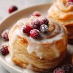 These Cream Cheese Danishes with Sugared Cranberries and Vanilla Butter Glaze are flaky, buttery pastries filled with a smooth cream cheese mixture, topped with sweet and tangy sugared cranberries, and drizzled with a luscious vanilla butter glaze. Perfect for a festive breakfast or elegant brunch treat.