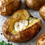 While russet potatoes are ideal for a crispy exterior and fluffy interior, you can try Yukon Gold or red potatoes for a slightly different texture, though they won’t get quite as crispy. Russets are the best bet for this Crispy Baked Potatoes Recipe’s signature crunch.