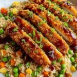 - Combine and Serve: Drizzle the prepared sauce over the crispy fried chicken strips and toss gently to coat every piece evenly with the flavorful sauce. Serve the saucy crispy chicken strips on top of the vegetable fried rice, creating a perfect blend of textures and flavors for an inviting meal.