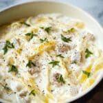 • For a lighter version, substitute turkey sausage and use milk instead of heavy cream.