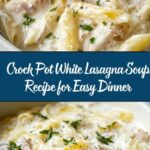 This Crock Pot White Lasagna Soup is a creamy, comforting Italian-American dish featuring tender lasagna noodles, seasoned Italian sausage, white beans, fresh spinach, and a blend of ricotta, mozzarella, and Parmesan cheeses. Slow-cooked to perfection, this hearty soup combines all the flavors of classic lasagna in a warm, easy-to-make crock pot meal.