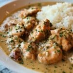 Reheat leftovers gently in a skillet over low heat or in the microwave, making sure to stir occasionally so the sauce warms evenly and the chicken stays tender. If the sauce seems too thick, add a splash of water or broth to loosen it up.