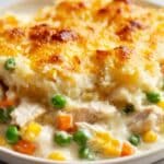 A sprinkle of freshly chopped parsley or a light dusting of grated Parmesan adds a beautiful touch of color and extra flavor brightness to your Easy Chicken Cobbler Dinner Casserole Recipe. For an extra pop, a few sliced green onions work beautifully as well.