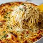 This Easy Chicken Spaghetti with Rotel is a comforting and flavorful baked pasta dish, combining tender shredded chicken, creamy cheeses, and a touch of spice from Rotel tomatoes. Perfect for a hearty family dinner, it features a blend of cream of chicken and mushroom soups, cheddar cheese, and aromatic seasonings, baked until bubbly and golden.