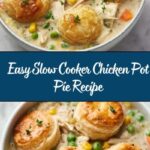 This Easy Slow Cooker Chicken Pot Pie is a comforting, hearty meal perfect for busy days. Tender chicken breasts are slow-cooked with peas, carrots, and a creamy chicken soup base, then topped with a flaky pie crust baked right in the slow cooker for a convenient no-oven-required pot pie.