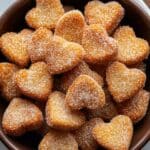 Try serving these adorable heart-shaped churro bites on a tiered serving tray for a brunch gathering or arrange them in a heart shape on a large platter for a romantic breakfast surprise. Adding edible flowers or colorful sprinkles can create a whimsical display that’s as delightful to look at as to eat.