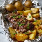 Store any leftover foil packet contents in an airtight container in the refrigerator for up to 3 days. Keep the steak and potatoes together to maintain the harmony of flavors and moisture.