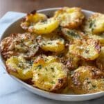 For a fun presentation, serve these Garlic Parmesan Smashed Potatoes Recipe bites on a rustic wooden board or in small individual ramekins topped with dollops of sour cream or your favorite dipping sauce. They’re also fabulous tossed into a bowl with extra parmesan and herbs for a shared appetizer style.