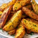 For a festive touch, serve these potatoes in a rustic wooden bowl or on a large platter with sprigs of fresh rosemary scattered around. You can also skewer the wedges on metal or wooden sticks, turning them into easy-to-eat finger food perfect for parties or picnics. Another fun idea is to top them with crumbled feta or grated Parmesan for an added savory twist.