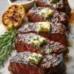 - Rest and Serve: Once the steaks are cooked, transfer them to a plate and top each with a spoonful of the herb butter. Let the steaks rest for 5 minutes to redistribute juices, then serve with optional lemon wedges.