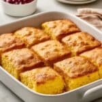 5. Bake Biscuits: Put the baking dish back into the oven and bake for 23 minutes. Halfway through, rotate the dish for even browning. If the edges brown too quickly, tent with aluminum foil after 15 minutes. The biscuits are done when the tops are golden brown and edges crisp. Remove and let cool for at least 2 minutes before serving.