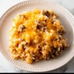 Finally, sprinkle in your shredded mozzarella and cheddar cheese blend. Stir until the cheese melts beautifully into the warm mixture, coating every grain of rice and morsel of beef with melty goodness. Serve hot and prepare for some serious yum!