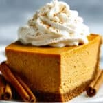 - Serve: Once the cheesecake has cooled and set, remove from the springform pan and transfer to a serving platter. Top with whipped cream and a sprinkle of cinnamon or pumpkin pie spice, if desired. Slice and enjoy!
