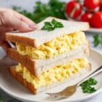 Japanese Egg Sandwich (Tamago Sando) Recipe is traditionally served cold or at room temperature. This allows the creamy egg salad to shine without melting or changing in texture.