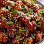 - Garnish and Serve: Sprinkle white sesame seeds and finely sliced scallions over the sauced cauliflower. Serve immediately to enjoy the crisp texture and bold flavors.