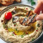 This authentic Lebanese Baba Ganoush recipe features perfectly roasted eggplants blended with tahini, garlic, lemon juice, and olive oil to create a creamy, smoky dip. Garnished with pomegranate seeds for a burst of freshness and served with pita bread or crunchy veggies, it’s a delicious and healthy appetizer that captures the essence of Middle Eastern cuisine.
