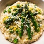 A bright and creamy Lemon Asparagus Risotto that combines tender arborio rice with fresh asparagus, zesty lemon, and Parmesan cheese for a delightful Italian-inspired vegetarian dish perfect for spring.