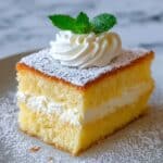 This Lemon Custard Cloud Cake features soft, fluffy sponge layers infused with lemon zest and juice, enveloping a silky, tangy lemon custard filling. Finished with a dusting of powdered sugar and optional whipped cream and fresh mint, it’s a refreshing and elegant dessert perfect for any occasion.