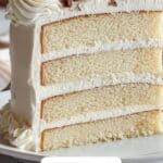 - Serve: Slice and enjoy your luscious white velvet cake with its tender crumb and rich vanilla frosting.