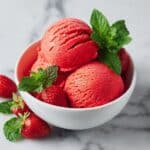 This refreshing Mango Strawberry Sorbet is a perfect frozen treat made with ripe mangoes and fresh strawberries, sweetened with sugar, and enhanced with a hint of lime juice. Blended to creamy perfection and frozen to achieve a smooth texture, this easy-to-make sorbet requires no ice cream maker and is ideal for warm weather or as a light dessert.